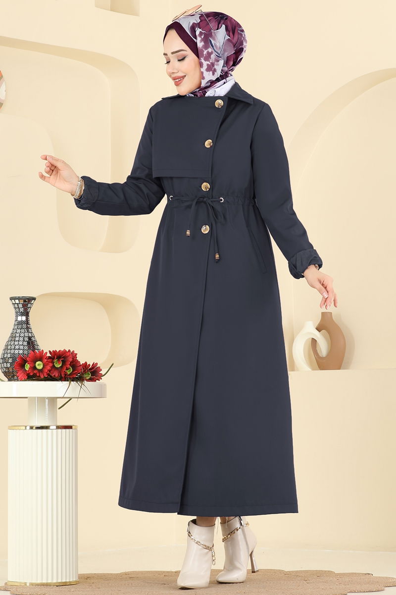 Ürün Detayları :Tesettür moda koleksiyonunun yeni ürünüdür. İpli bel tasarımına sahiptir. Metal kuş gözü detayları mevcuttur. Gömlek tipi yaka. Önden düğmeli kapanış. Astarı ile konfor sunar. Cebi bulunmaktadır.Renkler çekim koşullarına göre farklılık gösterebilir.