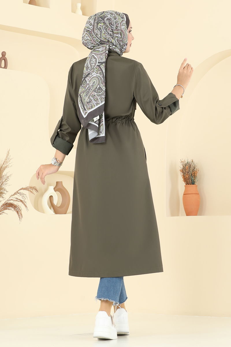 Beli Tünelli Cepli Trençkot 2512MSA980-MS Haki