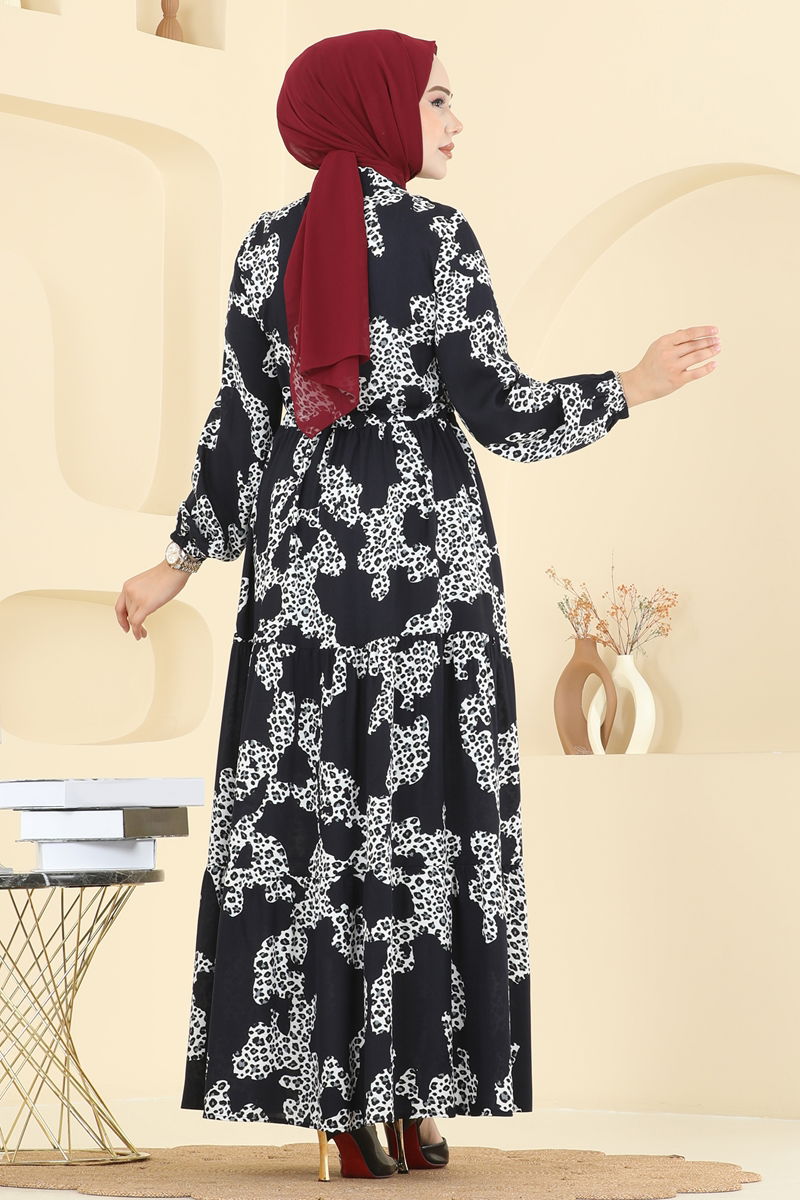 Beli Tünelli Desenli Elbise 7135ERK1158-MS Laci