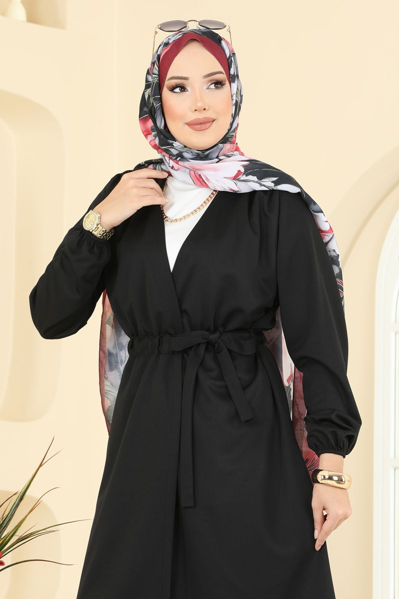 Ürün Detayları: Tesettür modasına uygun, yeni sezon tasarımı. Ürün ceket tipi yakaya sahiptir. Astar içermemektedir. Aksesuarlar ürünle verilmez. Kol ucu lastiklidir ve bel kısmı bağcıklıdır. Işıklandırma ve çekim teknikleri sebebiyle renk tonlarında farklılıklar olabilir.