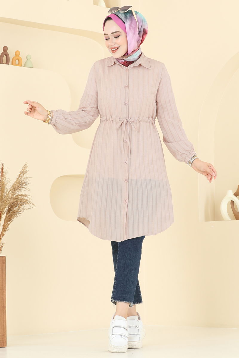 Beli Tünelli Tesettür Tunik 3061KTR750-MS Bej