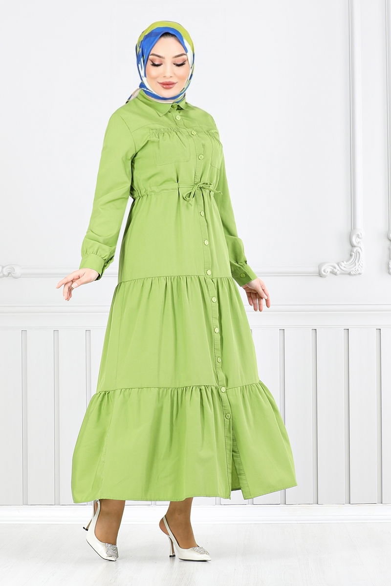 Tunneled Hijab Dress with Waist AsitKumas Feature: It is made of poplin fabric. It can be used in Four Seasonal seasons. Product Feature: New season hijab is a fashion product. Her waist is laced up. The product is a Shirt collar. The product is buttoned from the front. It is unlined. The chest pocket is active. The cuff buttons are active.There may be a tonal difference in the product due to concept photo shoots. Washing : IT CAN BE WASHED WITHOUT TIGHTENING AT 30 DEGREES.(DELICATE WASHING) (The product on the model is size 38.)Weight (Kg):0.46