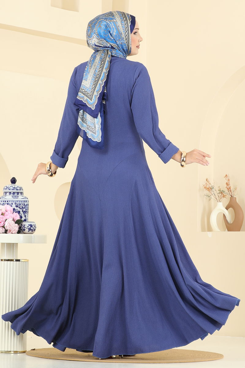Bisiklet Yaka Bürümcük Elbise 7132ERK1158-MS İndigo