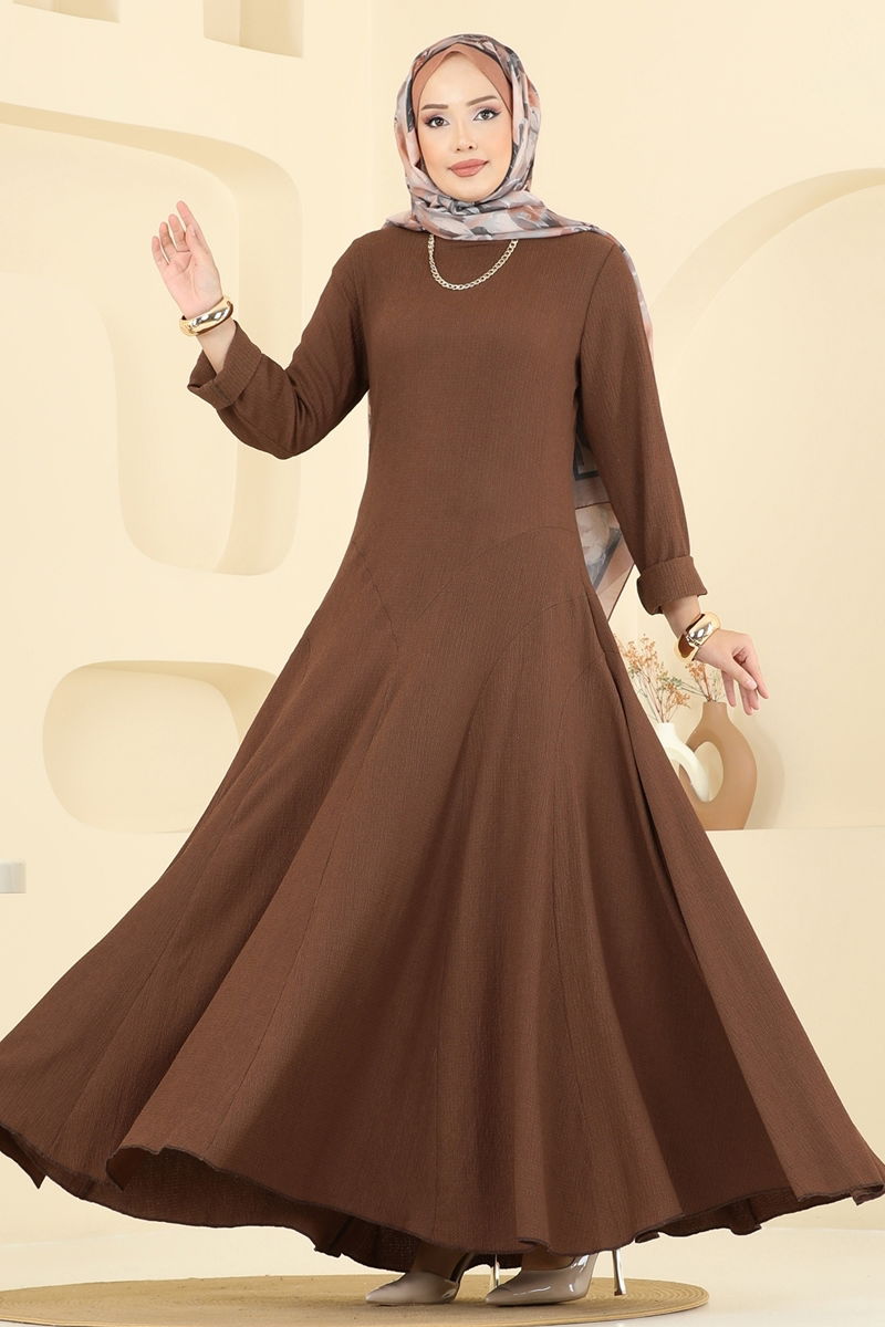 Bisiklet Yaka Bürümcük Elbise 7132ERK1158-MS Kahve