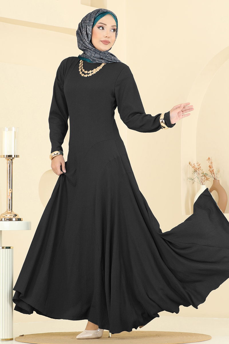 Bisiklet Yaka Bürümcük Elbise 7132ERK1158-MS Siyah