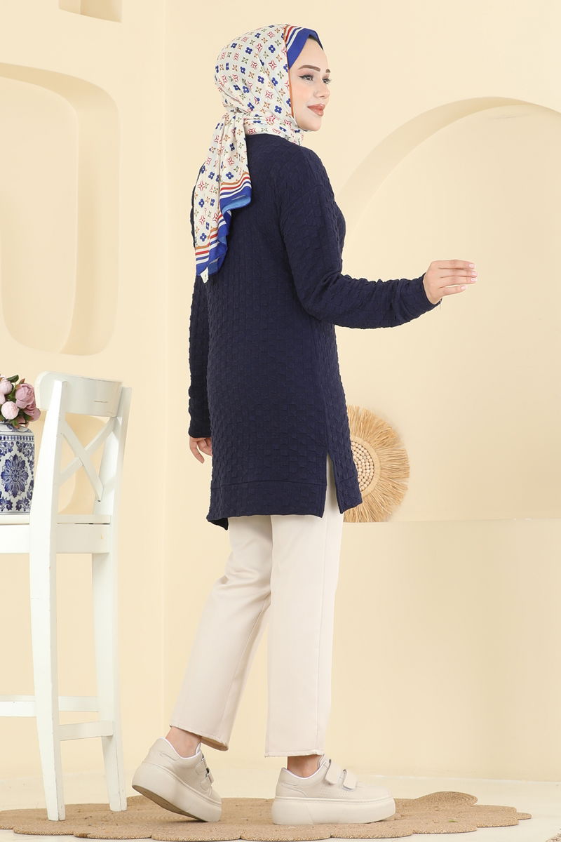 Ürün Detayları: Tesettür giyime uygun yeni sezon ürünüdür. Bisiklet yakaya sahiptir. Yanları yırtmaç detaylıdır. Kolunda özel bir arma bulunmaktadır.Renklerde çekimlerden dolayı ufak farklılıklar olabilir.