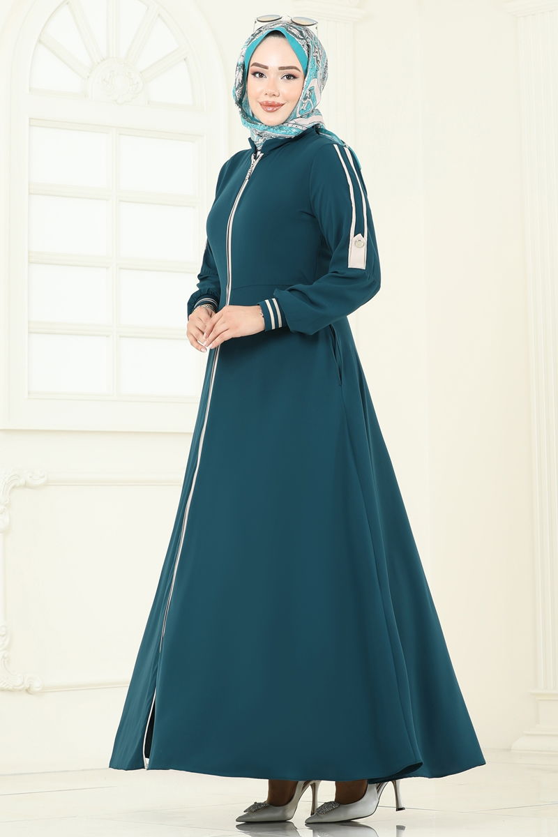 Petrol Renk Biye Detaylı Ferace