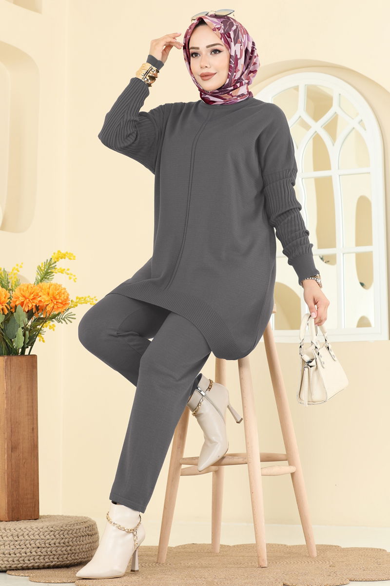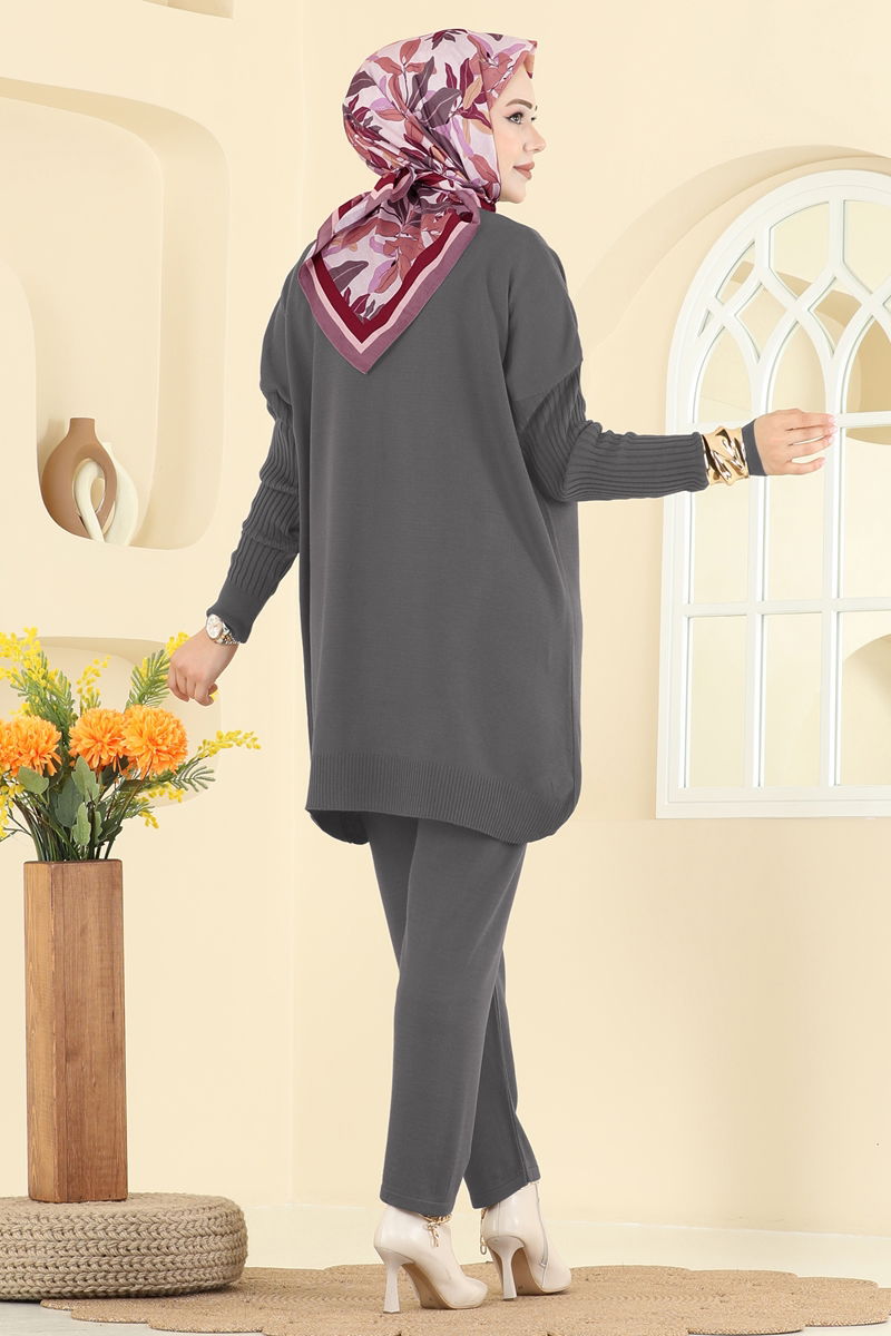 Boğazlı İkili Triko Takım 2737AYD574-MS Füme
