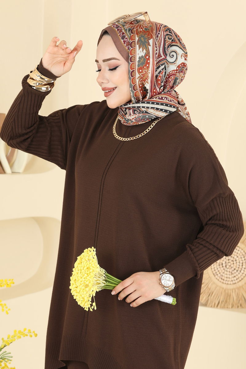 Boğazlı İkili Triko Takım 2737AYD574-MS Kahve