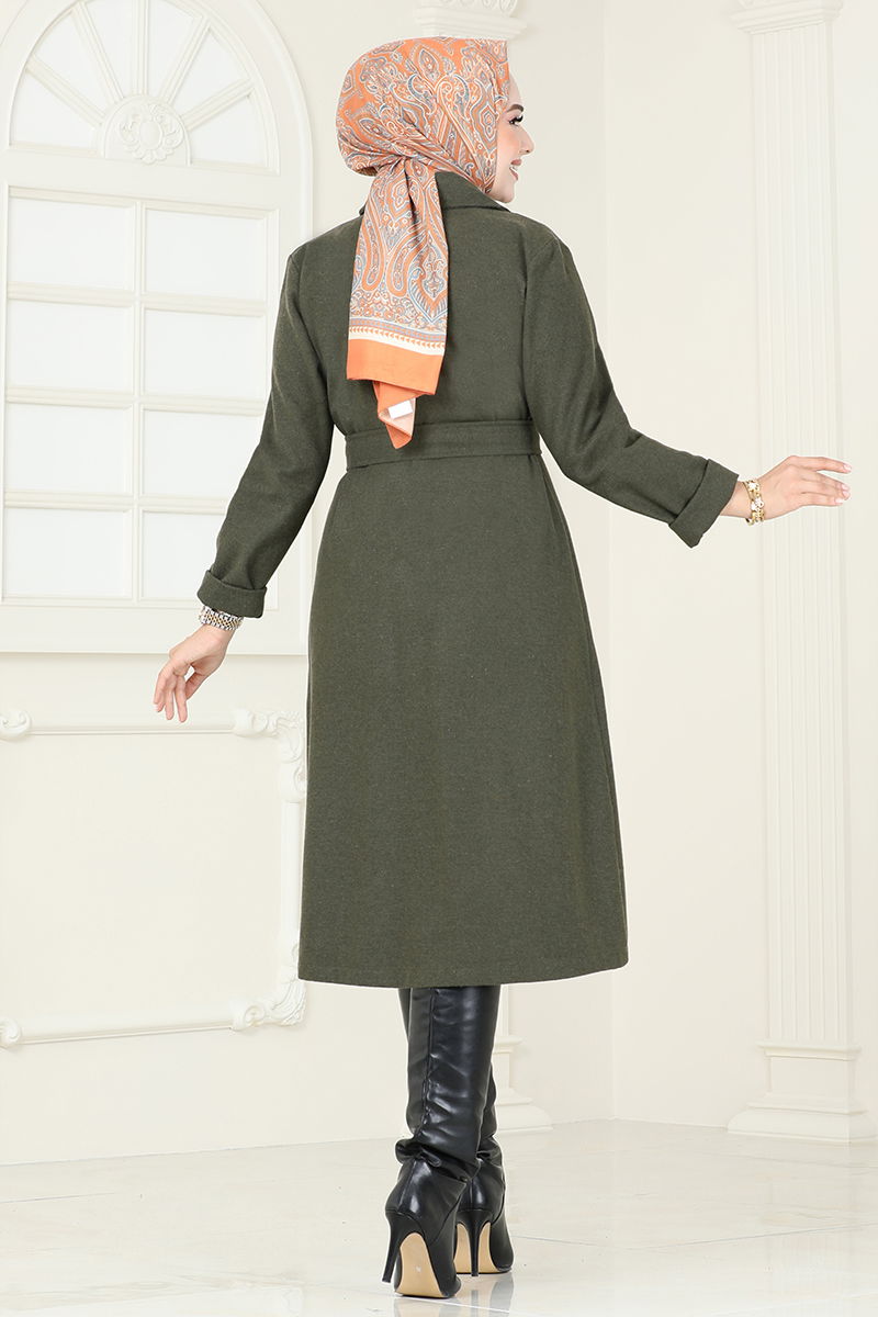 Bolero Detailed Stamp Coat 2054BGS895-M Khaki