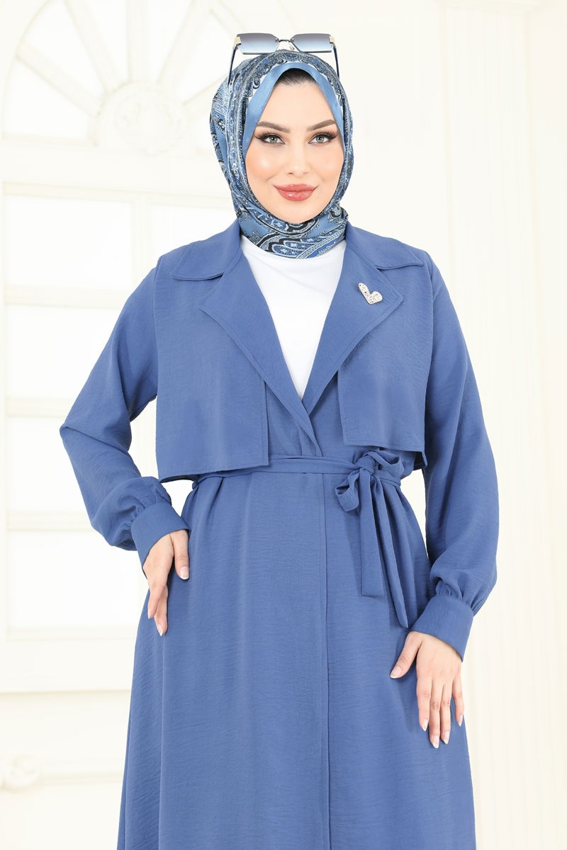 Ürün Özellikleri:Mevcut tesettür moda koleksiyonuna aittir. Üründe kruvaze yaka kullanılmıştır. Astarı yoktur. Kemeri ürüne ek olarak sunulmuştur, kullanımı kişiye özeldir. Bluz ürüne dahil değildir, sadece kombin amaçlı gösterilmiştir. Aksesuarlar fotoğraflara dahil edilmemiştir. Pantolonun bel kısmı elastiktir. Kapak düğmeleri işleve sahiptir. Renk farklılıkları çekimlerden kaynaklanabilir.