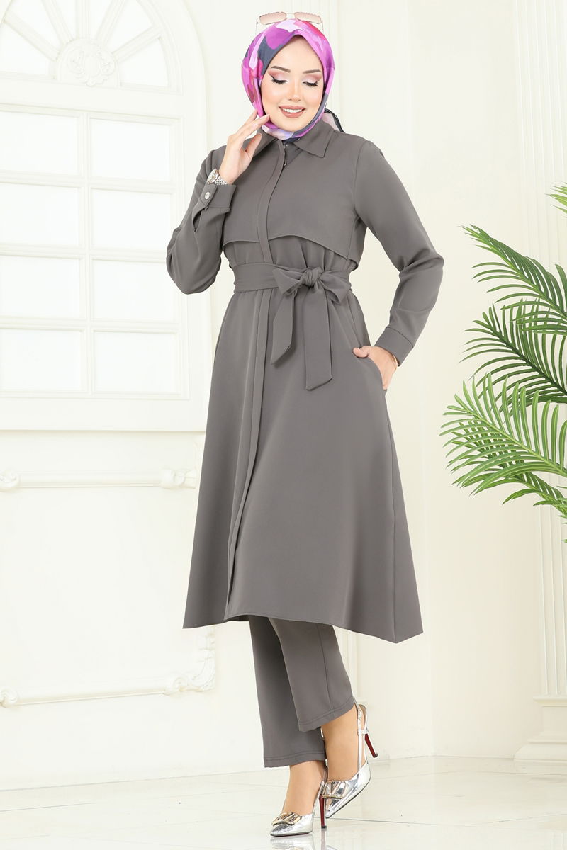 Antrasit Bolero Detaylı Tesettür Takım