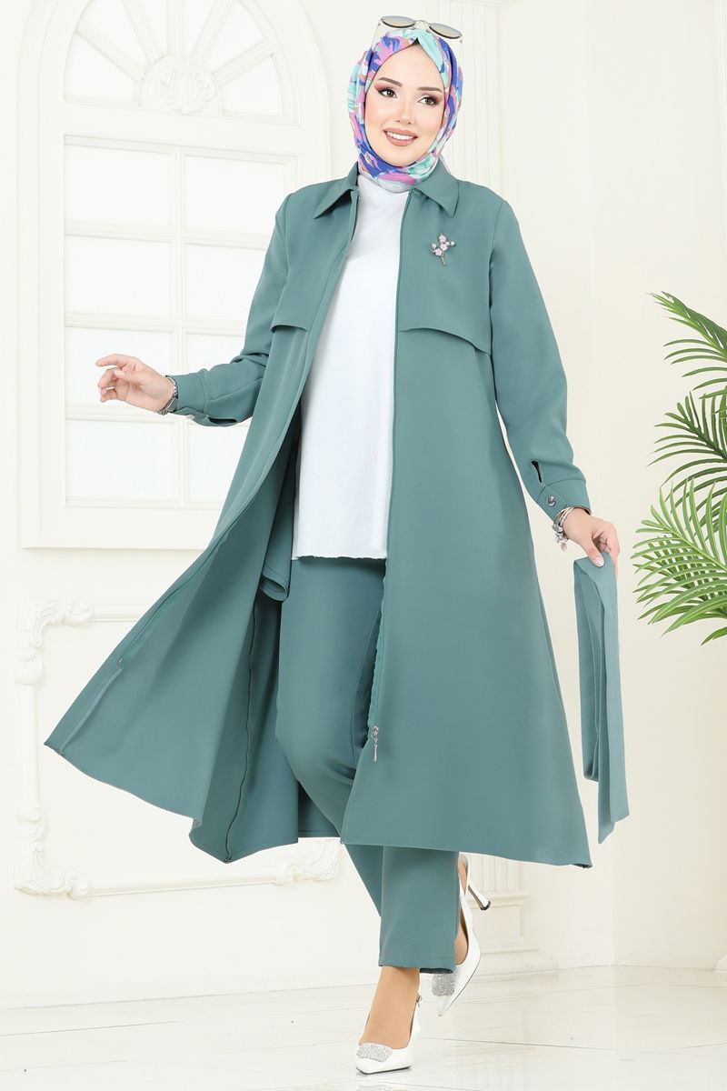 Bolero Detaylı Tesettür Kombin 23023UKB139-MS Mint