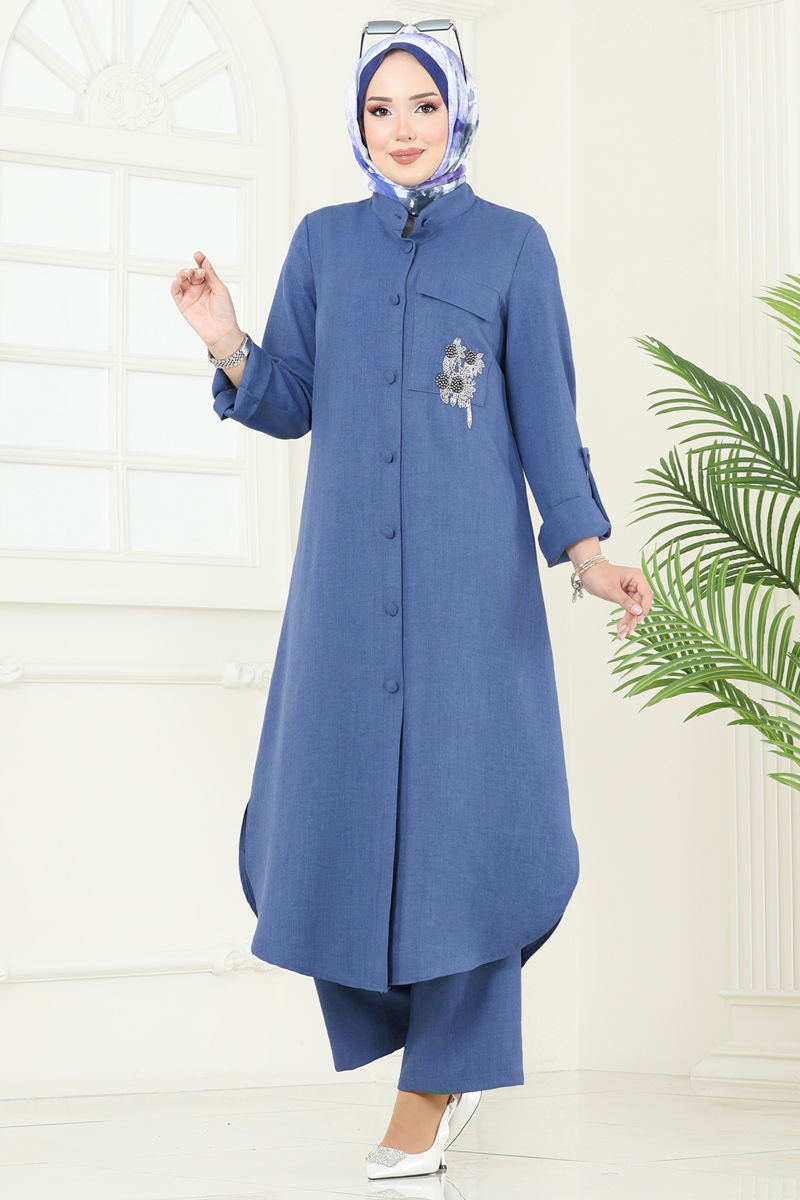 Boncuk Detay Tesettür Takım 2686SL432-MS İndigo