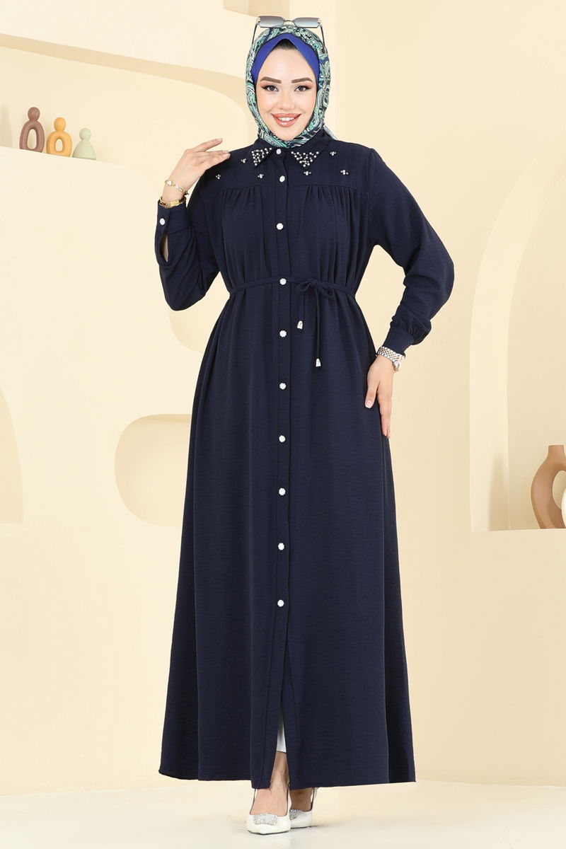 Ürün Detayı : Yeni sezon tesettür giyim modelidir. Gömlek yakalı tasarıma sahiptir. Ön kısmı düğmeli olup, astarsızdır. İnci süslemeleri sabitlenmiş olarak gelir. Kemer ürüne dahildir, isteğe göre kullanılmayabilir. Manşet düğmeleri işlevseldir. Konsept çekimler nedeniyle ton farklılıkları oluşabilir.