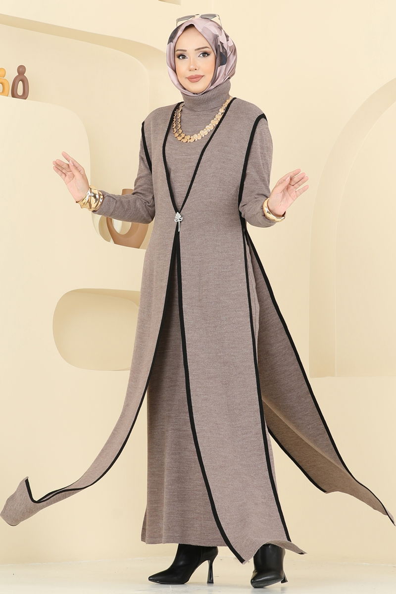 Ürün Detayları: Sezonun trend tesettür tasarımlarındandır. Elbise baştan geçirilerek giyilir. Boğazlı yaka tasarımına sahiptir. Yırtmaç detayına sahiptir. Astar bulunmamaktadır. Çıkartılabilir broş aksesuarı mevcuttur, kullanımı opsiyoneldir.Renkler çekim koşulları nedeniyle farklılık gösterebilir.