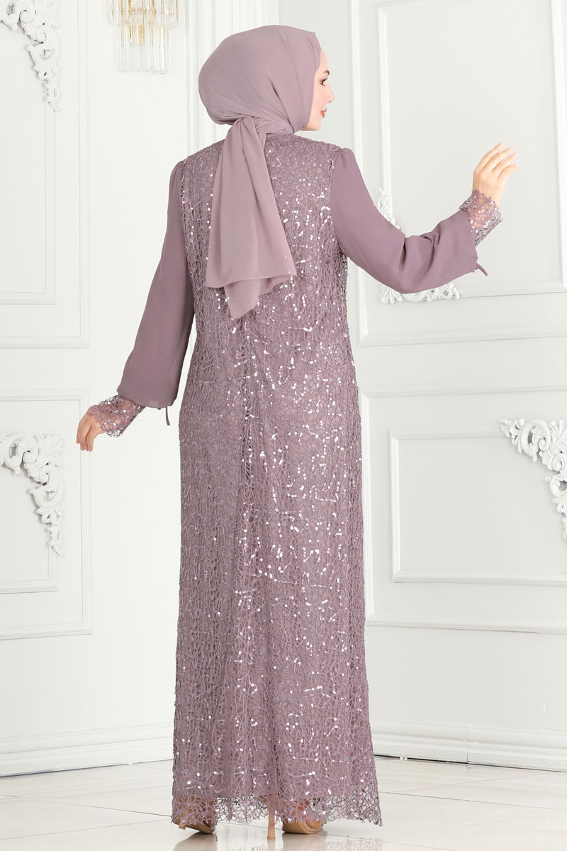 Broşlu Tesettür Abiye Elbise 2517ELC1143-MS Lila