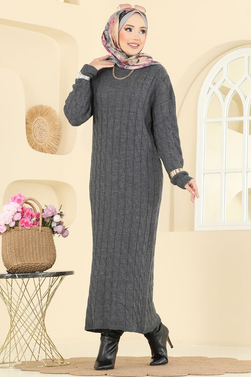 Burgu Desenli Triko Elbise 2752AYD574-MS Antrasit
