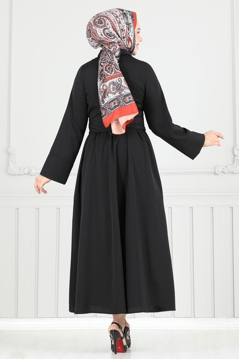 Çapraz Bağlı Tesettür Elbise - Siyah Renk