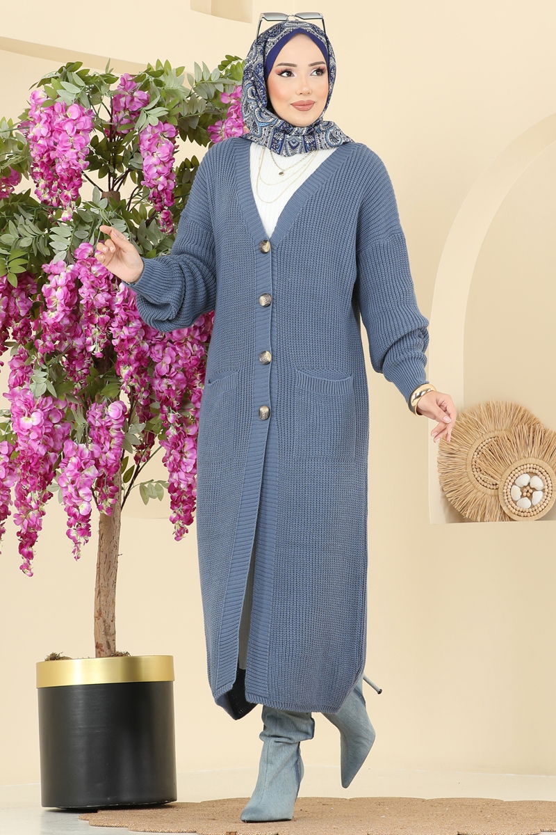 The essential piece of the new season, the V-Neck Knit Cardigan, is designed to keep you warm during the fall and winter months. With its delicate knit fabric, it offers a soft touch. This cardigan, which can be cleaned with a gentle wash at 30 degrees, provides both practical and stylish use with its button-down front design and pocketed structure. Suitable for modest wear, this model is offered in a wide range from sizes 36 to 52. This cardigan, ideal for everyday wear to special occasions, will be a staple in your wardrobe.