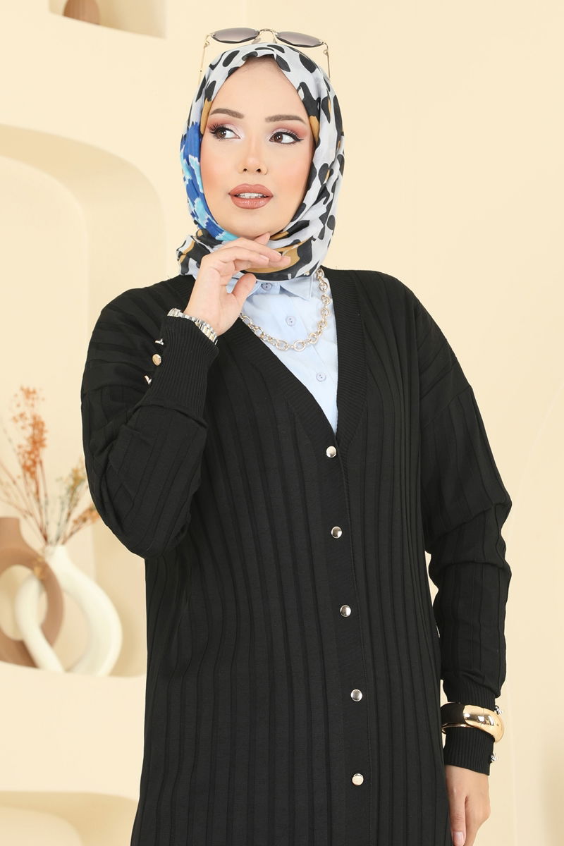 The Front Buttoned Knit Cardigan is specially designed for modest wear. Made from Mercerized Knit fabric, this cardigan ensures you stay stylish during the autumn and winter months. Its front-buttoned design and cuff accessory buttons offer a striking look. The unlined structure makes it light and practical. Available in a standard size, this piece is a must-have in every wardrobe.