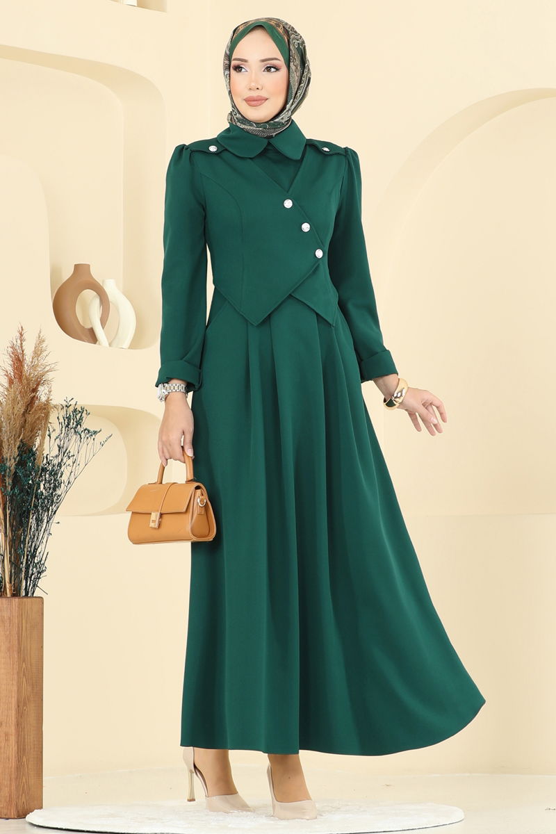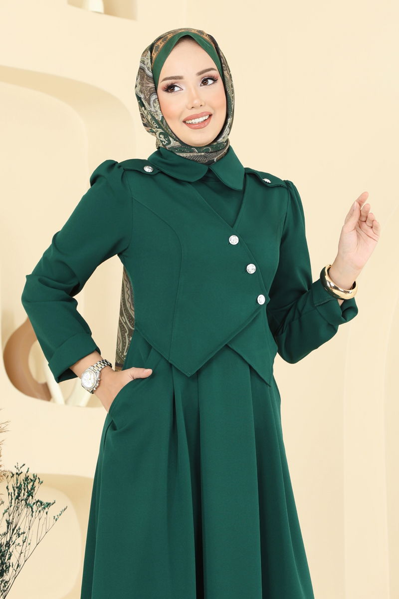 Ceket Detaylı Dabıl Elbise 2743SL432-MS Zümrüt
