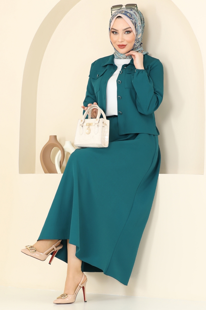 Cep Detaylı Etekli Takım 23005UKB139-MS Açık Petrol