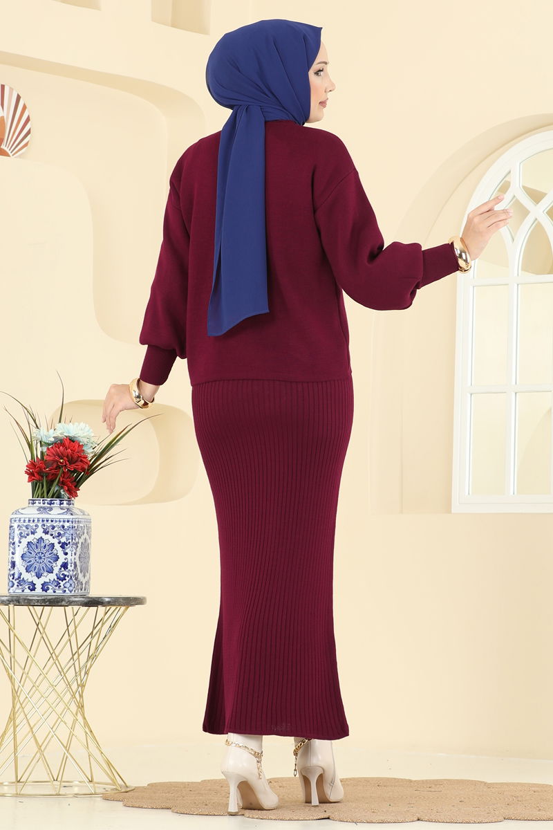 Bordo Renkli Çiçek Detaylı İkili Takım