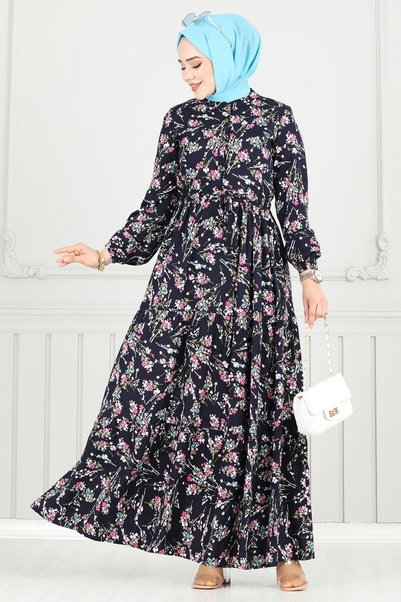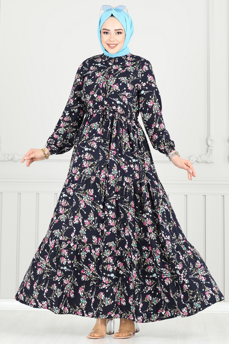 Çiçek Desen Tesettür Elbise 7122BG354-MS Laci