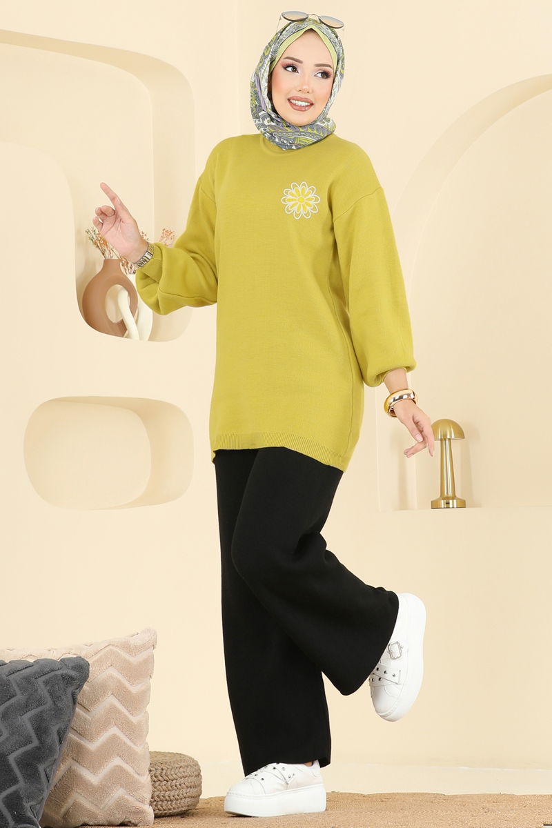 Çiçek Detaylı Triko Takım 2724AYD574-MS Asit&Siyah
