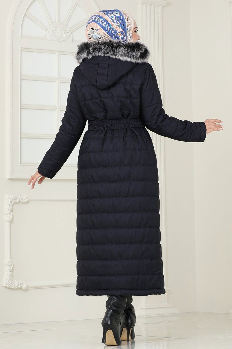 Product Feature : It is a new season hijab fashion product. The product has a Hooded collar. It is lined.. The product has a zipper at the From the front part. The fur is sewn into the product. The hood is sewn to the product. Belt included, optional not available. Pocket available. There may be a tonal difference in the product due to concept photo shoots.