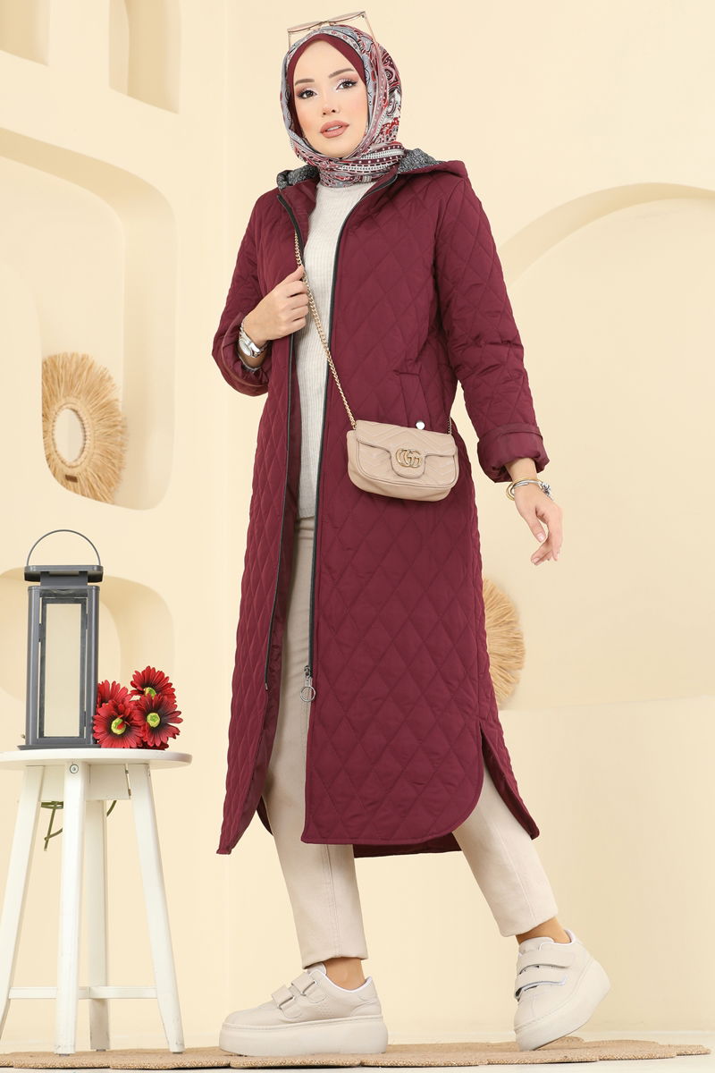 Meet the Hooded Quilted Coat, your go-to garment for the colder autumn and winter seasons. This modesty coat stands out with the comfort and style of quilted fabric. It allows for gentle washing at 30 degrees, ensuring durability and easy maintenance. The hooded design, zippered front, and adjustable tie at the back offer both functionality and a stylish appearance. The slit detail provides freedom of movement, while the lined interior keeps you warm. The size 38 on the model ensures a perfect fit for all sizes. Practical pocket details make everyday use easier.