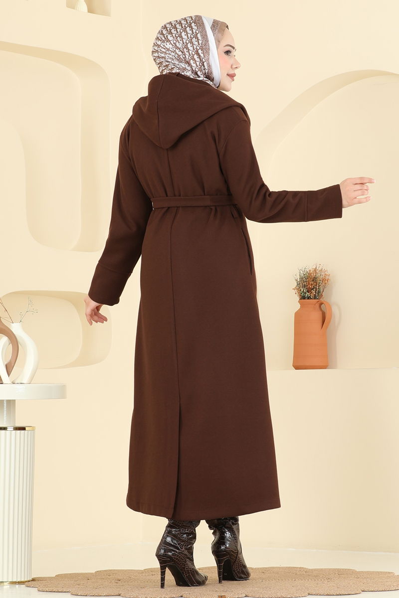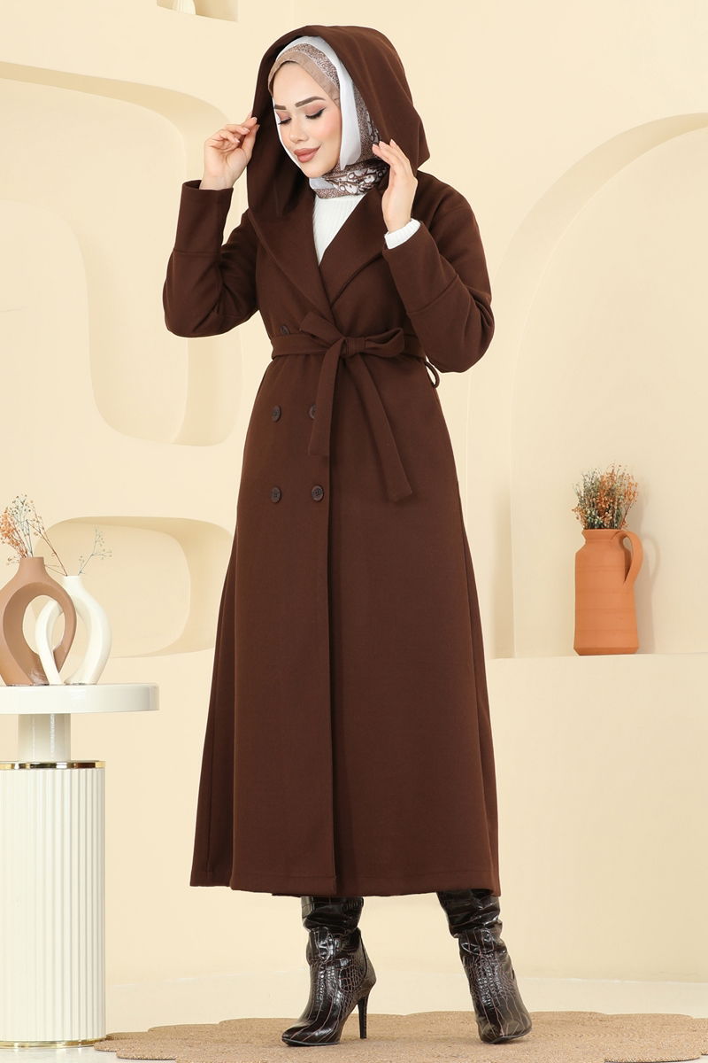 Keep warm during the autumn and winter seasons with our Double-Breasted Hooded Coat, designed specifically for modest fashion. Made from special cashmere fabric, it offers a soft touch. It can be washed delicately at 30 degrees, ensuring a long-lasting use. The double-breasted front and button details provide a classic and elegant look. The lining offers maximum comfort. The fixed hood and belt detail add both functionality and aesthetic coherence. The belt can be optionally omitted. This coat is the perfect choice to keep you warm while maintaining your style on cold days.