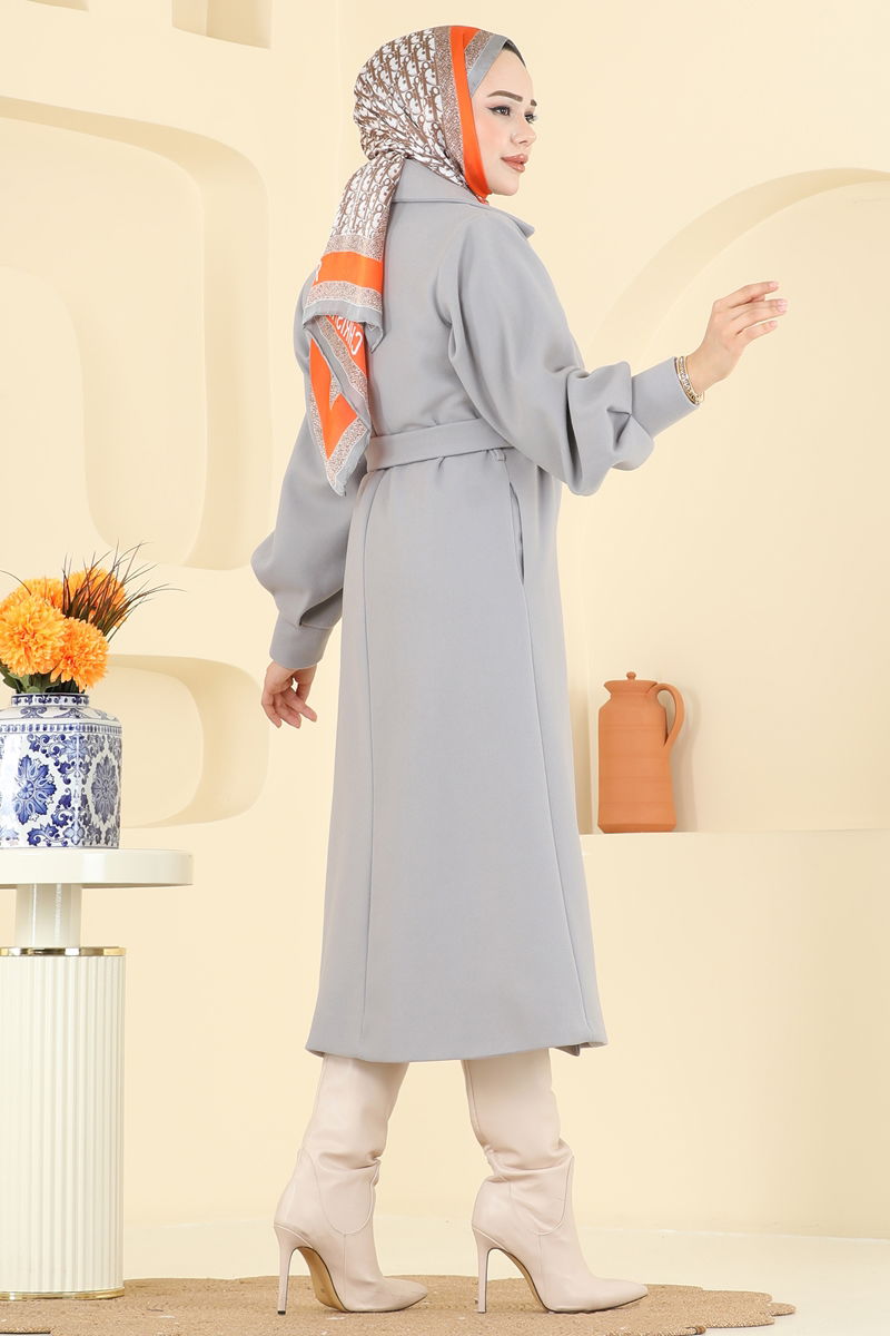 Product Feature : It is a new season hijab fashion product. The product has a Double-breasted collar. The product has From the front buttons. It is lined. Belt included, optional not available. Accessories are not included. Pocket available. There may be a tonal difference in the product due to concept photo shoots.