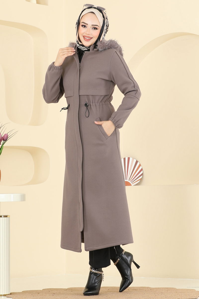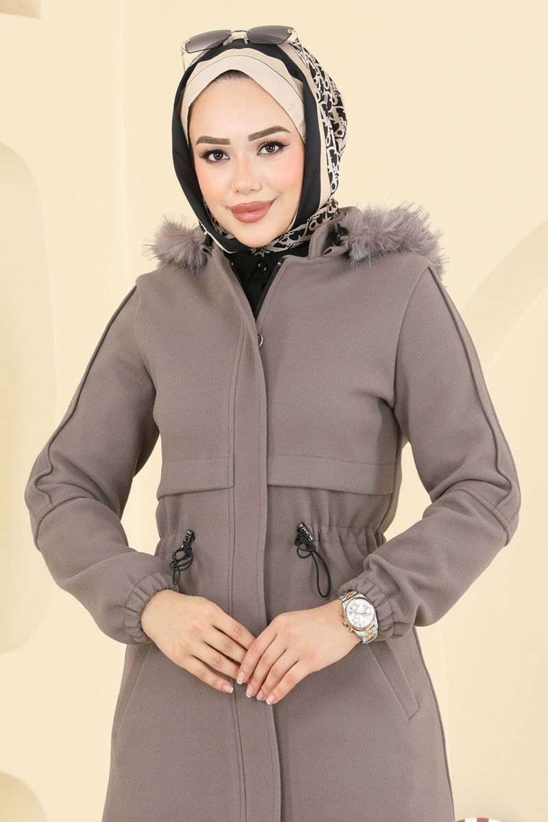 Product Feature : It is a new season hijab fashion product. The hood is detachable and can be used optionally. The product has a Upright collar. Unlined. The product has a zipper at the From the front part. The product has an elastic waistband. The fur is sewn into the product. The product has a pocket. The cuff is rubberized. There may be a tonal difference in the product due to concept photo shoots.