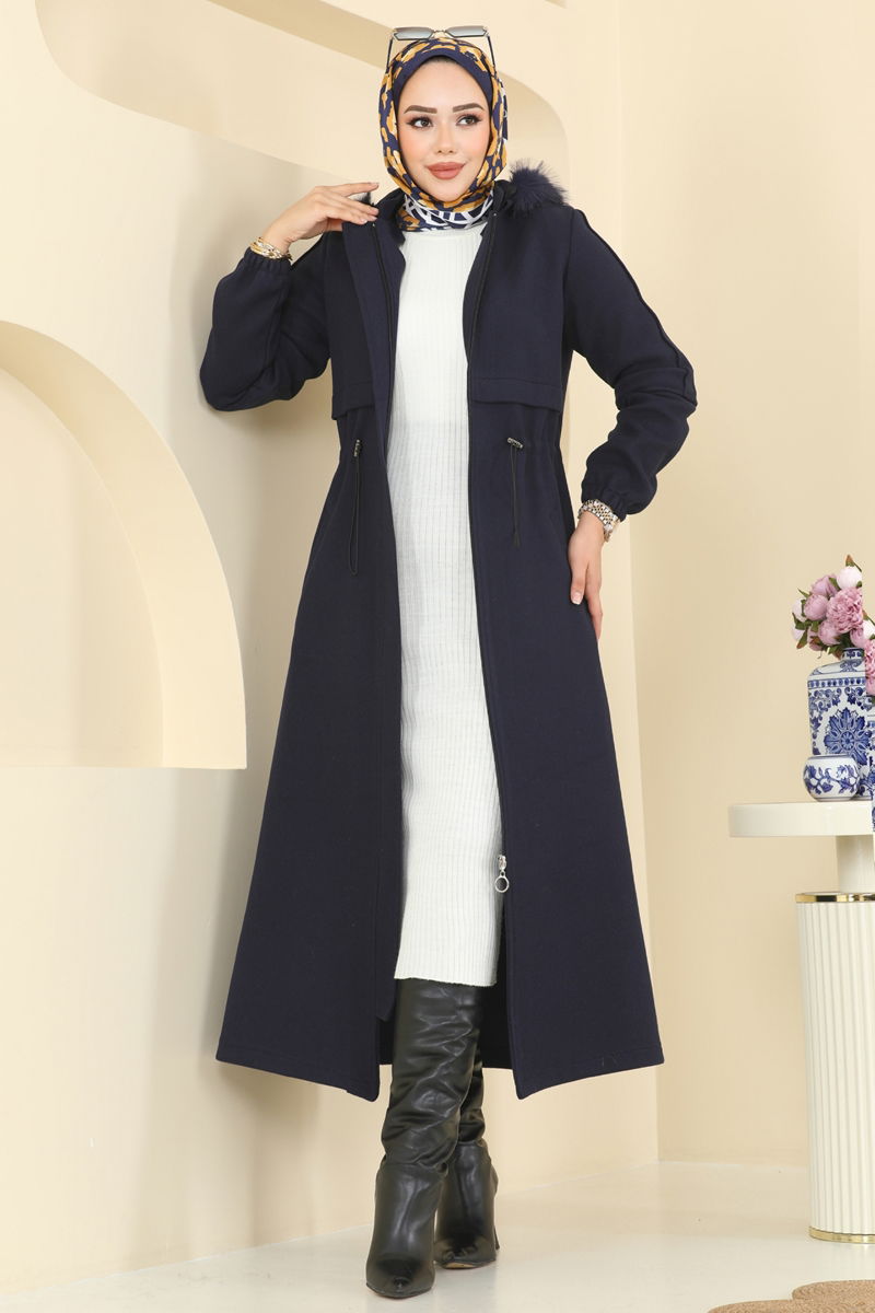 Product Feature : It is a new season hijab fashion product. The hood is detachable and can be used optionally. The product has a Upright collar. Unlined. The product has a zipper at the From the front part. The product has an elastic waistband. The fur is sewn into the product. The product has a pocket. The cuff is rubberized. There may be a tonal difference in the product due to concept photo shoots.
