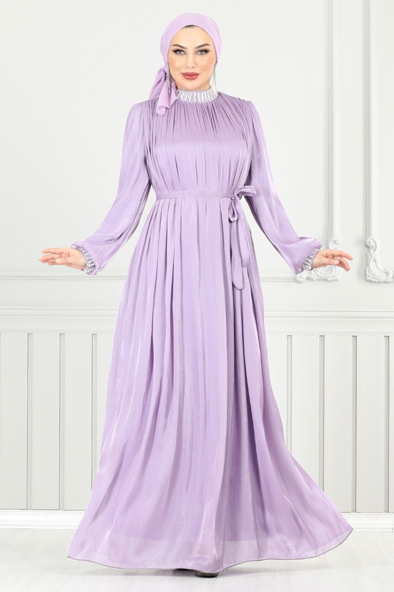 Evening Dress with Pearl Collar Lilakuma Feature: It is made of Bright Fabric fabric. It can be used in Four Seasonal seasons. Product Feature: New season hijab is a fashion product. The product is the dominant collar. It is lined. The product is zipped from the back. Pearl details are my penknife. The belt is included in the product, it may not be used on request. The cuff buttons are active.There may be a tonal difference in the product due to concept photo shoots. Washing : Only dry cleaning should be done. Belt Feature: The two ends of the belt are sewn to prevent the belt from fluctuating, the middle part is left empty (seamless). (The item on the model is size 38.) Evening Dresses with pearls on the collar, which offer elegance and elegance together, dazzle with its design suitable for hij Deckwear. This special design, suitable for the Four Seasons season, is made of glossy fabric that can only be maintained by dry cleaning. Evening dress, which attracts attention with its dominant collar and detailed pearl embroidery, offers comfort and elegance at the same time with its lined structure and back zipper design Decked out. The belt detail is specially sewn to prevent rippling and can be removed optionally. this evening dress, shown on a size 38 model, promises you a unique look on any special day.Weight (Kg):0.58
