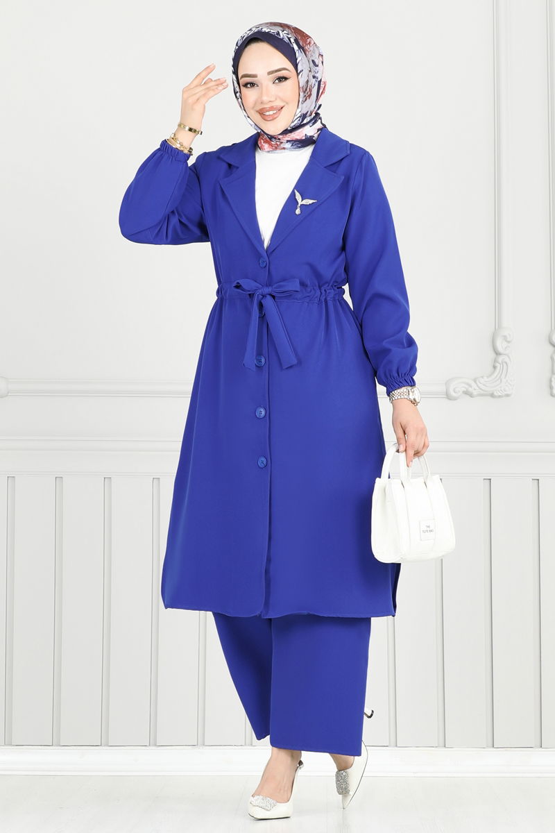 Product Feature : It is a new season hijab fashion product. It has a laced waist. The product has a Double-breasted collar. The product has From the front buttons. It has a slash.. Unlined. Blouse is not included. Sample combination is made with the blouse to show the intended use of the product. Accessories are not included. The waist of the trousers is elastic. The cuff is rubberized. There may be a tonal difference in the product due to concept photo shoots.