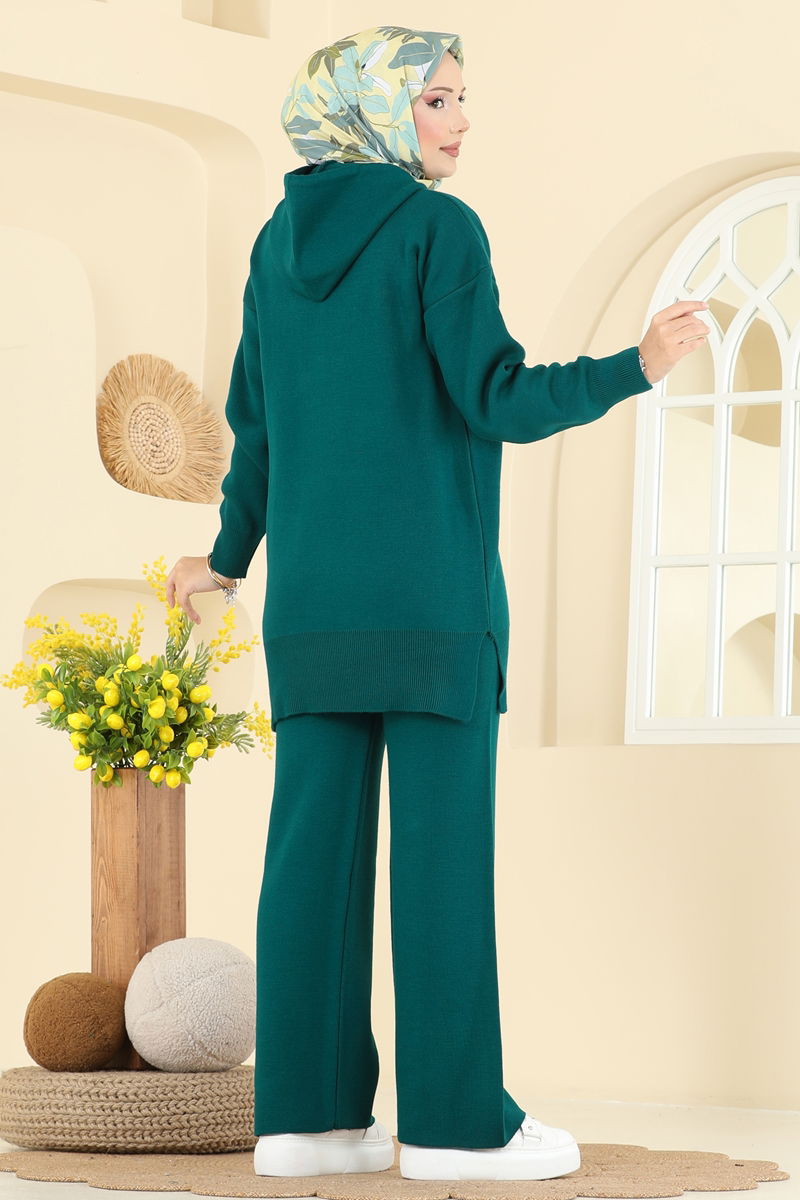 Our hoodie detailed knit set is a perfect choice for your autumn and winter seasons! Offering comfort and style with its design, this set is made from knit fabric and is unlined but does not show through. This modest fashion-friendly outfit is indispensable for every wardrobe. It is standard sized and includes a tunic and trousers.