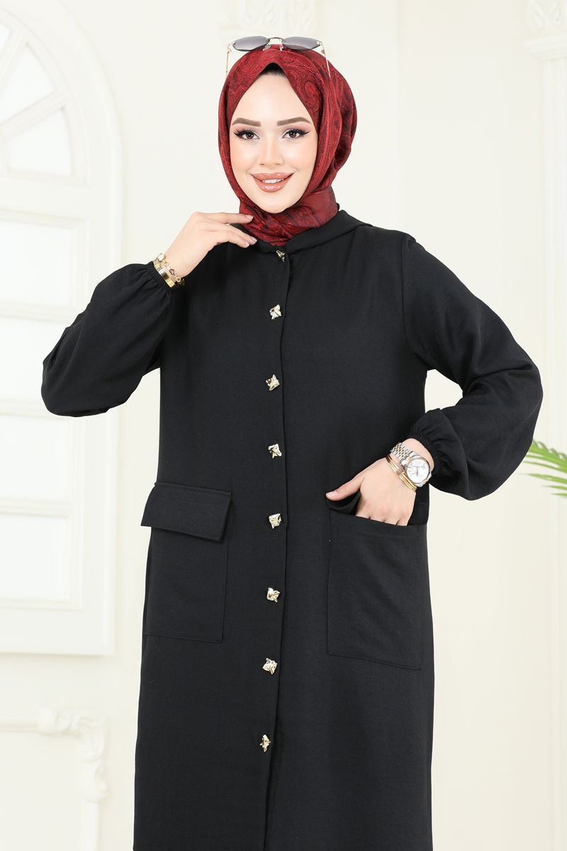 Product Feature : It is a new season hijab fashion product. The product has a Hooded collar. The product has From the front buttons. It has a slash.. Unlined. The hood is sewn to the product. Pocket available. The waist of the trousers is elastic. The cuff is rubberized. There may be a tonal difference in the product due to concept photo shoots.