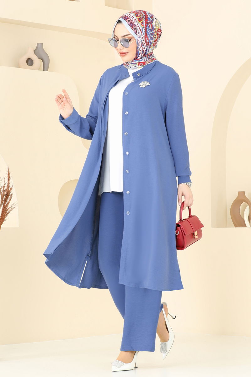 Product Feature : It is a new season hijab fashion product. The product has a Cycling collar. The product has Secret buttons. The tunic has a side slash.. Unlined. Accessories are not included. Blouse is not included. Sample combination is made with the blouse to show the intended use of the product. The waist of the trousers is elastic. Cuff buttons are active. There may be a tonal difference in the product due to concept photo shoots.
