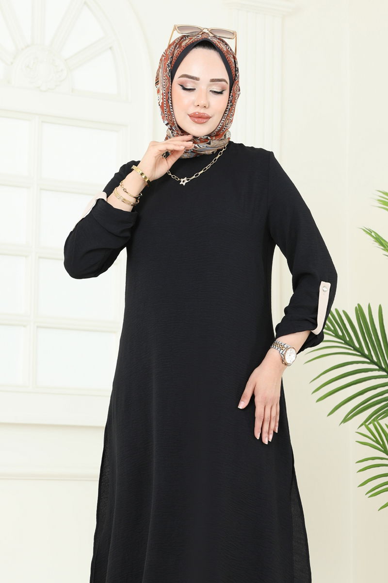 Product Feature : It is a new season hijab fashion product. The product is worn on the head. The product has a Cycling collar. The tunic has a side slash.. Unlined. Accessories are not included. The waist of the trousers is elastic. Cuff buttons are active. There may be a tonal difference in the product due to concept photo shoots.