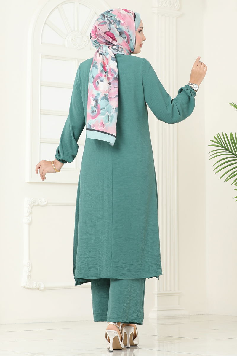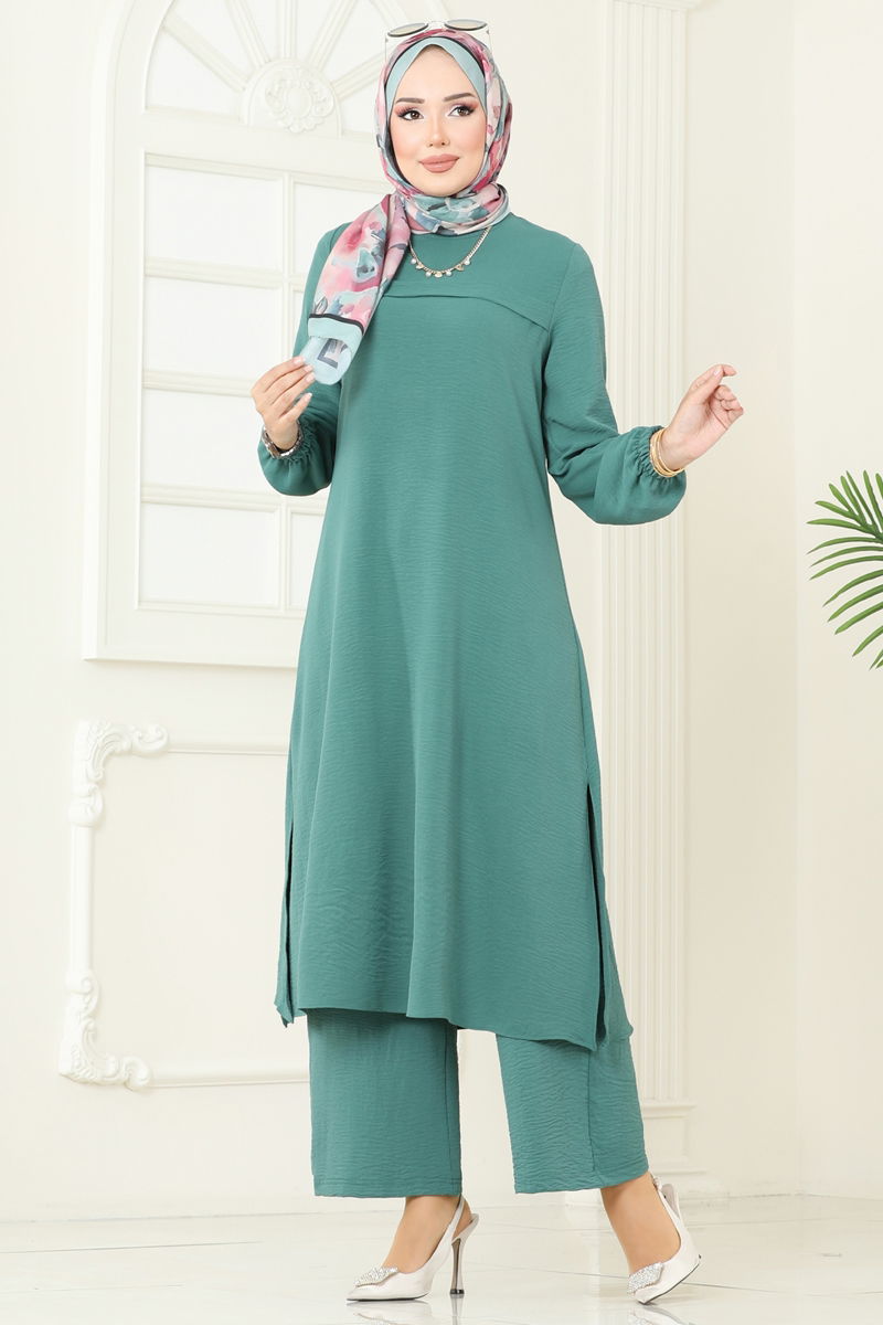 Product Feature : It is a new season hijab fashion product. The product has a Cycling collar. The tunic has a side slash.. Unlined. The waist of the trousers is elastic. The cuff is rubberized. There may be a tonal difference in the product due to concept photo shoots.