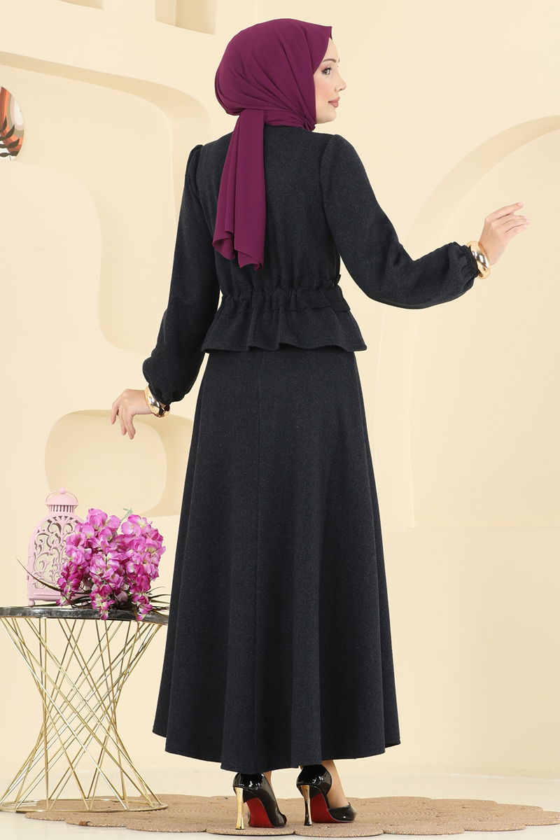 Perfect for the Autumn and Winter seasons, this Elastic Cuffed Herringbone Suit is an ideal choice for veiled women. Recommended to be washed gently at 30 degrees to maintain its shape for a long time, this outfit features a bicycle neck and an unlined design for a modern look, while the drawstring waist skirt combined with a zippered waist offers both comfort and elegance.