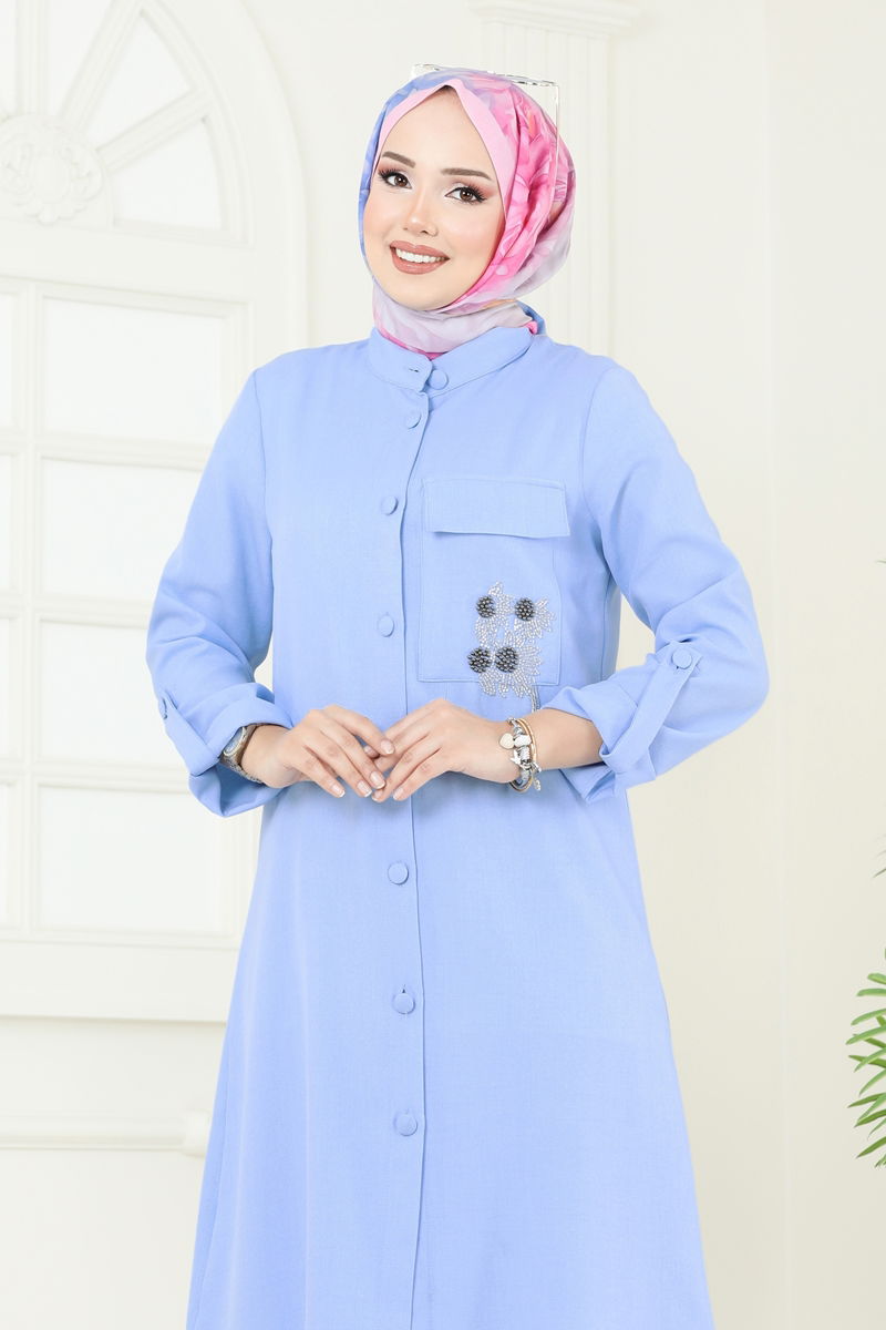 Product Feature : It is a new season hijab fashion product. The product has a Half Judge collar. The product has From the front buttons. The tunic has a side slash.. Unlined. Bead details are sewn. The chest pocket is active. The waist of the trousers is elastic. Cuff buttons are active. There may be a tonal difference in the product due to concept photo shoots.
