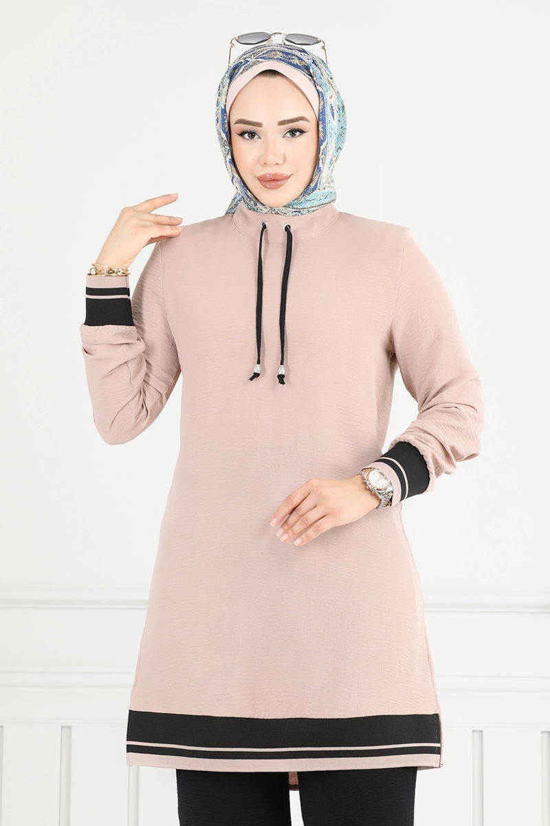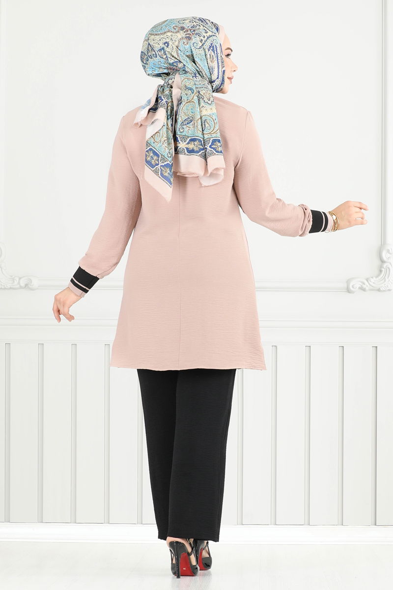 Product Feature : It is a new season hijab fashion product. It has a button that can be used from the back. The product has a Judge collar. The tunic has a side slash.. Unlined. Lacing details are accessories. There may be a tonal difference in the product due to concept photo shoots.