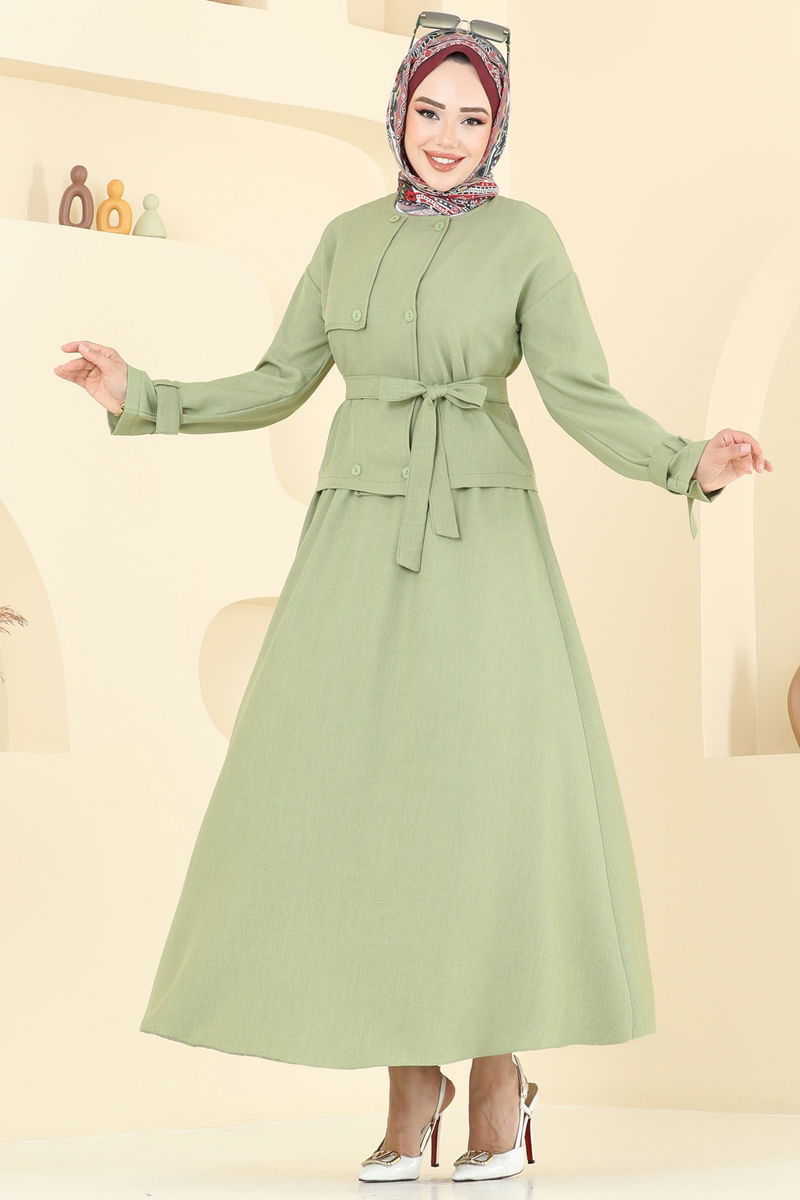 Product Feature : It is a new season hijab fashion product. The product has a Cycling collar. The product has From the front buttons. Unlined. The skirt waist is elastic. There may be a tonal difference in the product due to concept photo shoots.