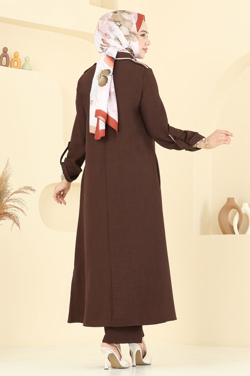 Product Feature : It is a new season hijab fashion product. The product has a Shirt collar. The product has Secret buttons. The tunic has a side slash.. Unlined. Buttons are accessories. Pocket details are accessories. The waist of the trousers is elastic. There may be a tonal difference in the product due to concept photo shoots.