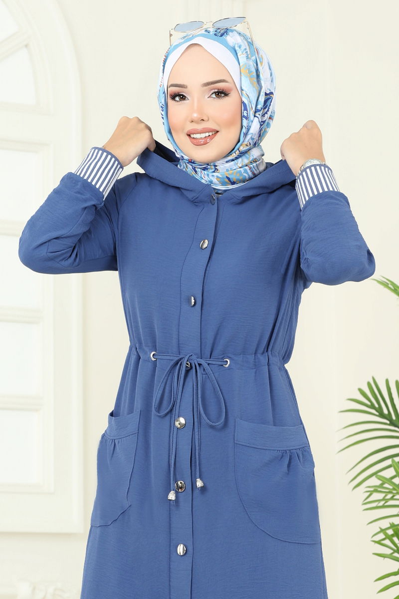 Product Feature : It is a new season hijab fashion product. It has a laced waist. The product has a Hooded collar. The product has From the front buttons. Unlined. Pocket available. The waist of the trousers is elastic. There may be a tonal difference in the product due to concept photo shoots.