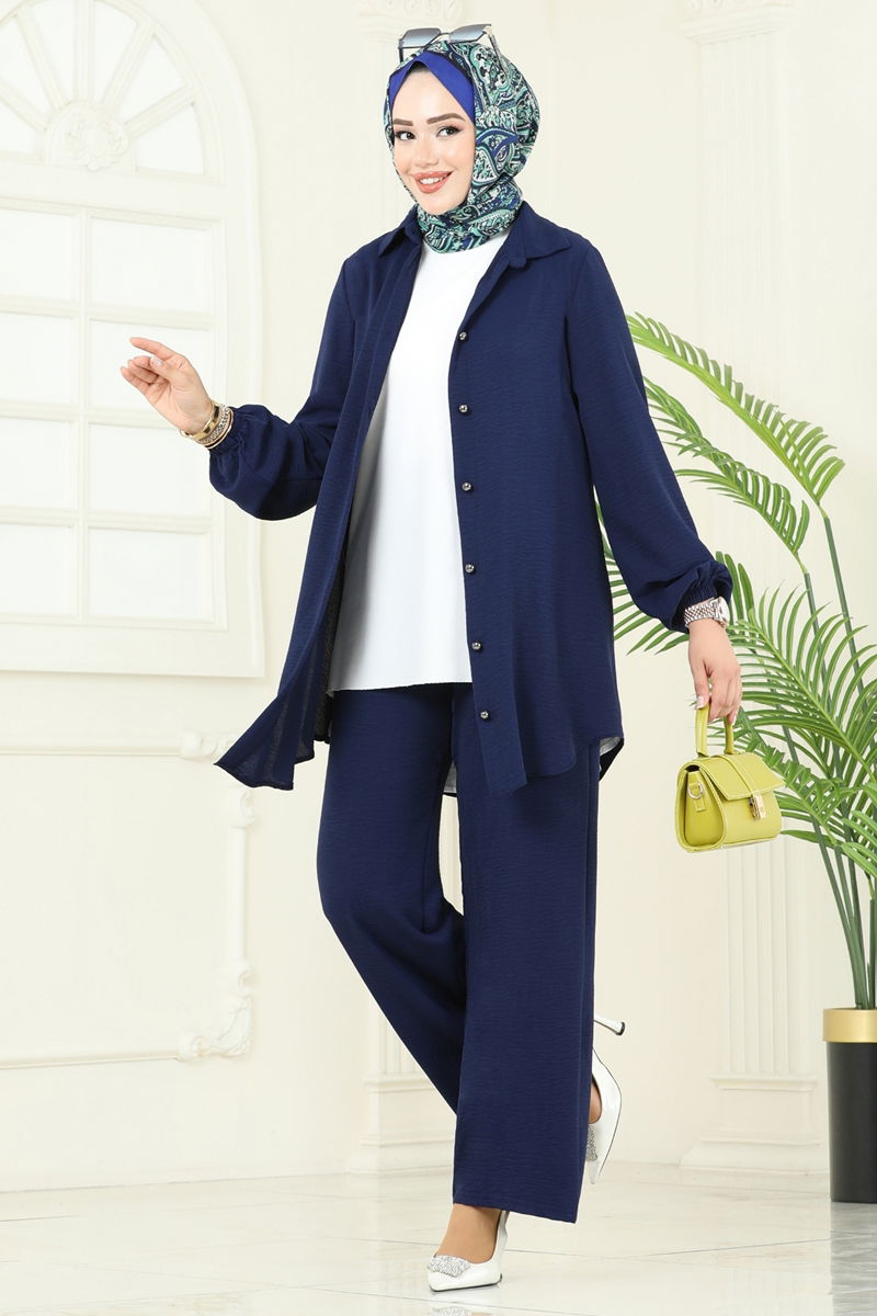 The Zip-Back Modest Suit offers a stylish and comfortable dressing experience, suitable for all seasons. This suit can be washed at 30 degrees with delicate care due to its durable aerobin fabric construction. Featuring a shirt collar and front button design, it combines classic and modern lines. Its back zipper and elastic waistband pants ensure a comfortable fit. Ideal for both everyday wear and special occasions, this modest suit will become an indispensable part of your wardrobe.